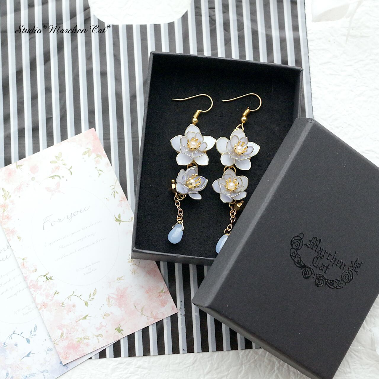 大きなピアスでこちらの箱をご指定いただいた場合は、すみませんがピローケースに変更になります。
