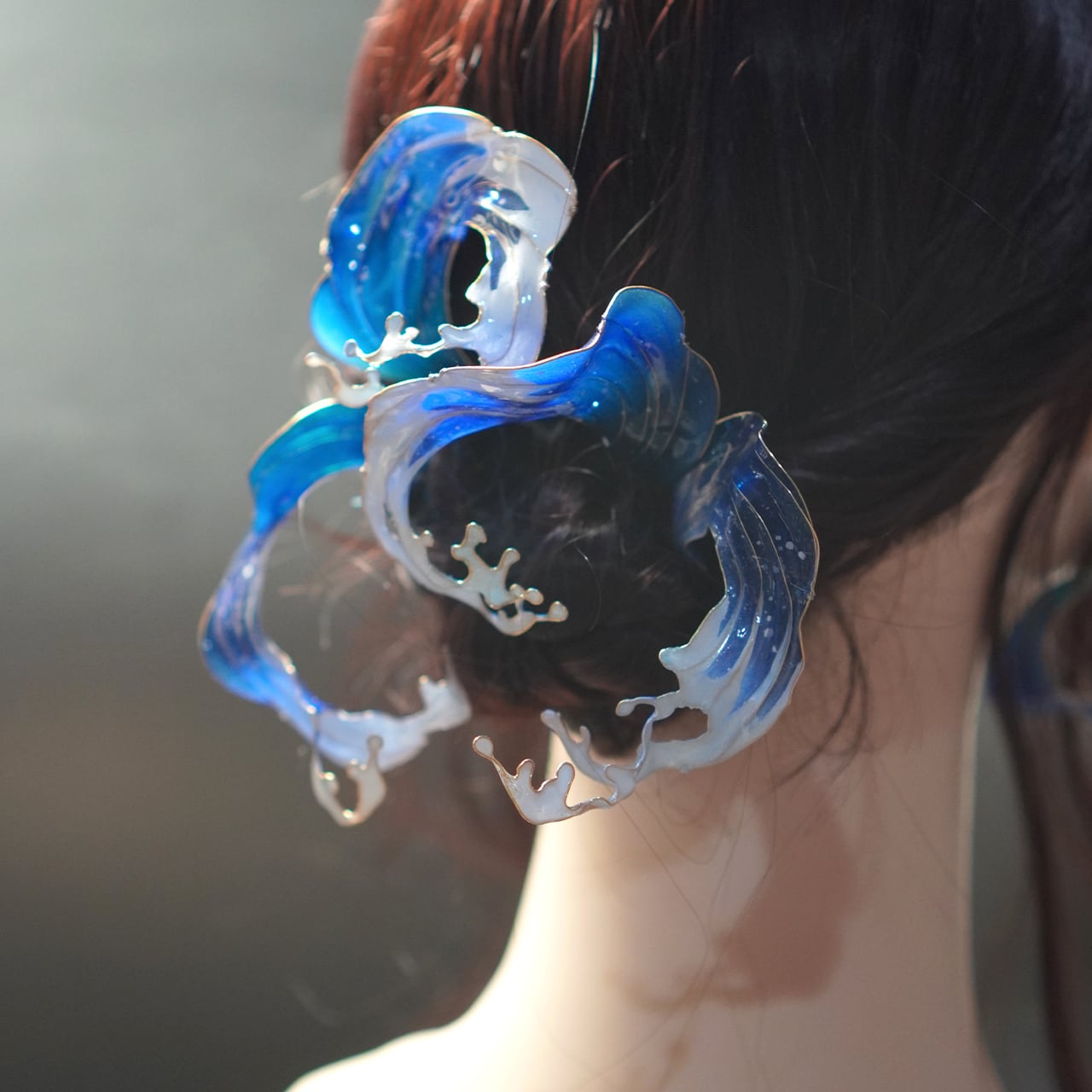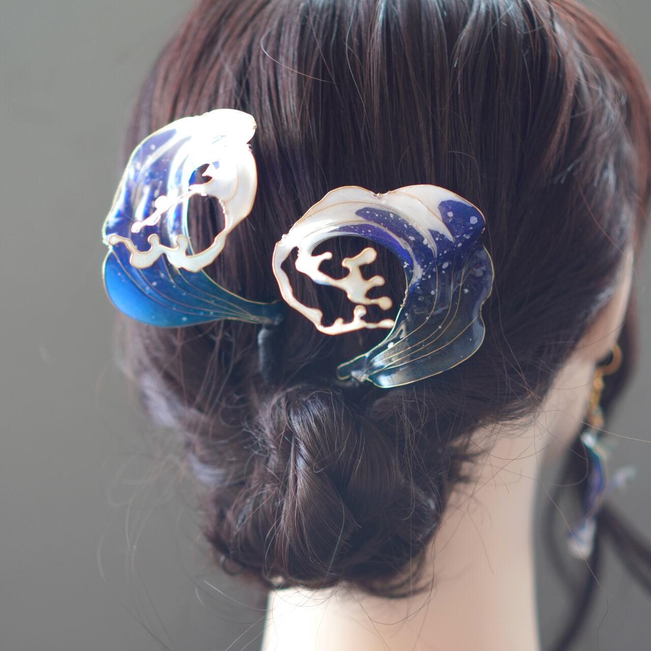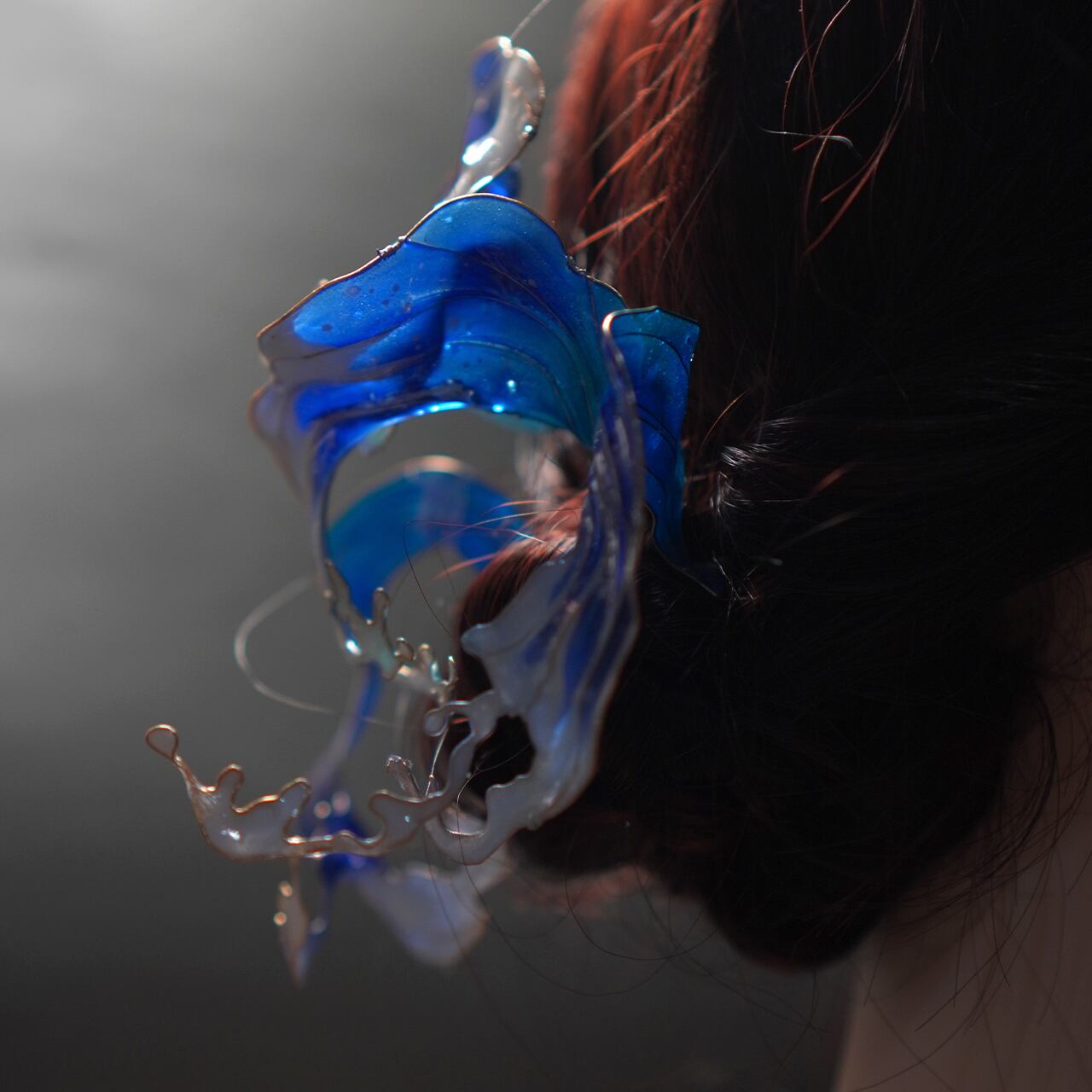 【芍薬・髪飾り】*波と芍薬の髪飾り*【布花・ディップアート】