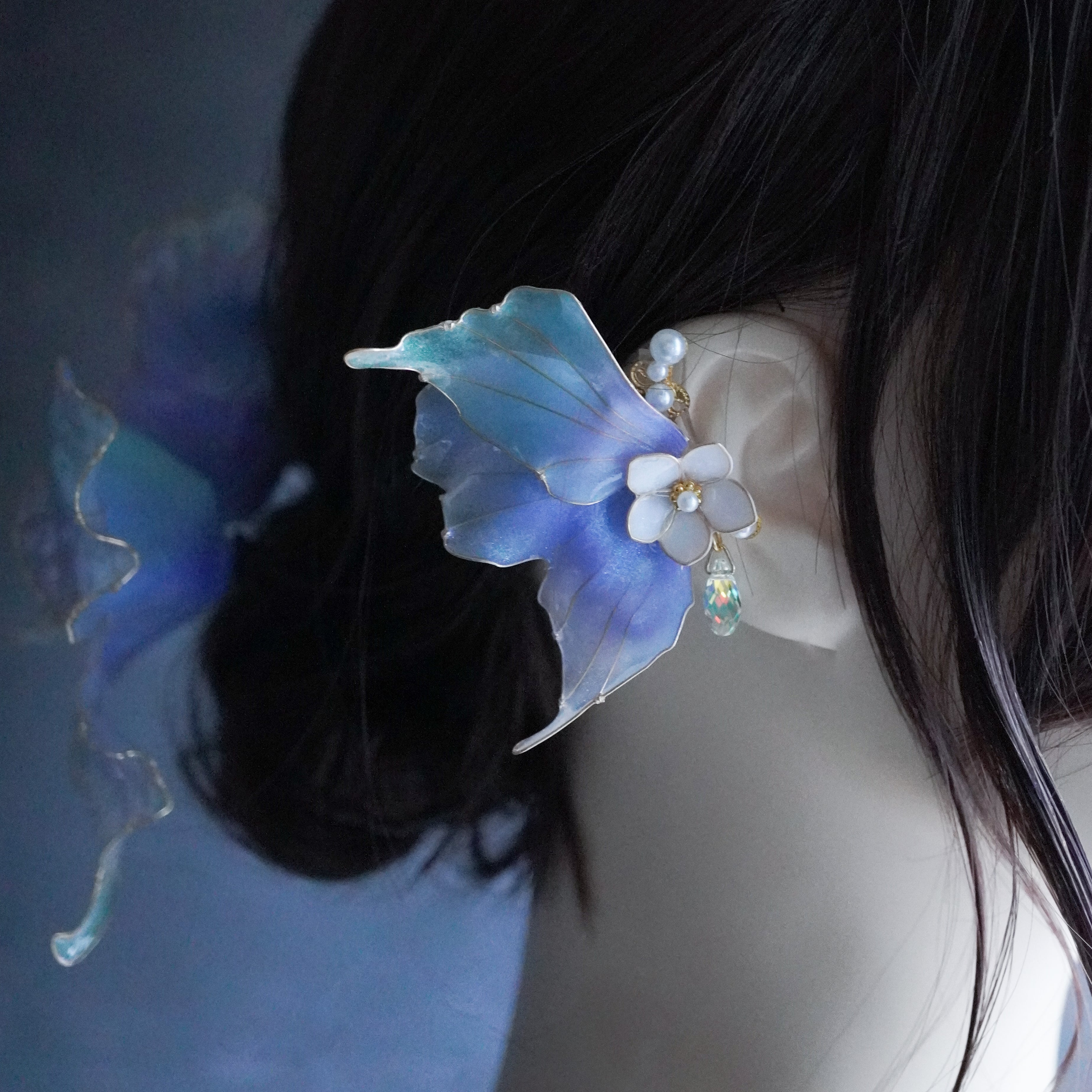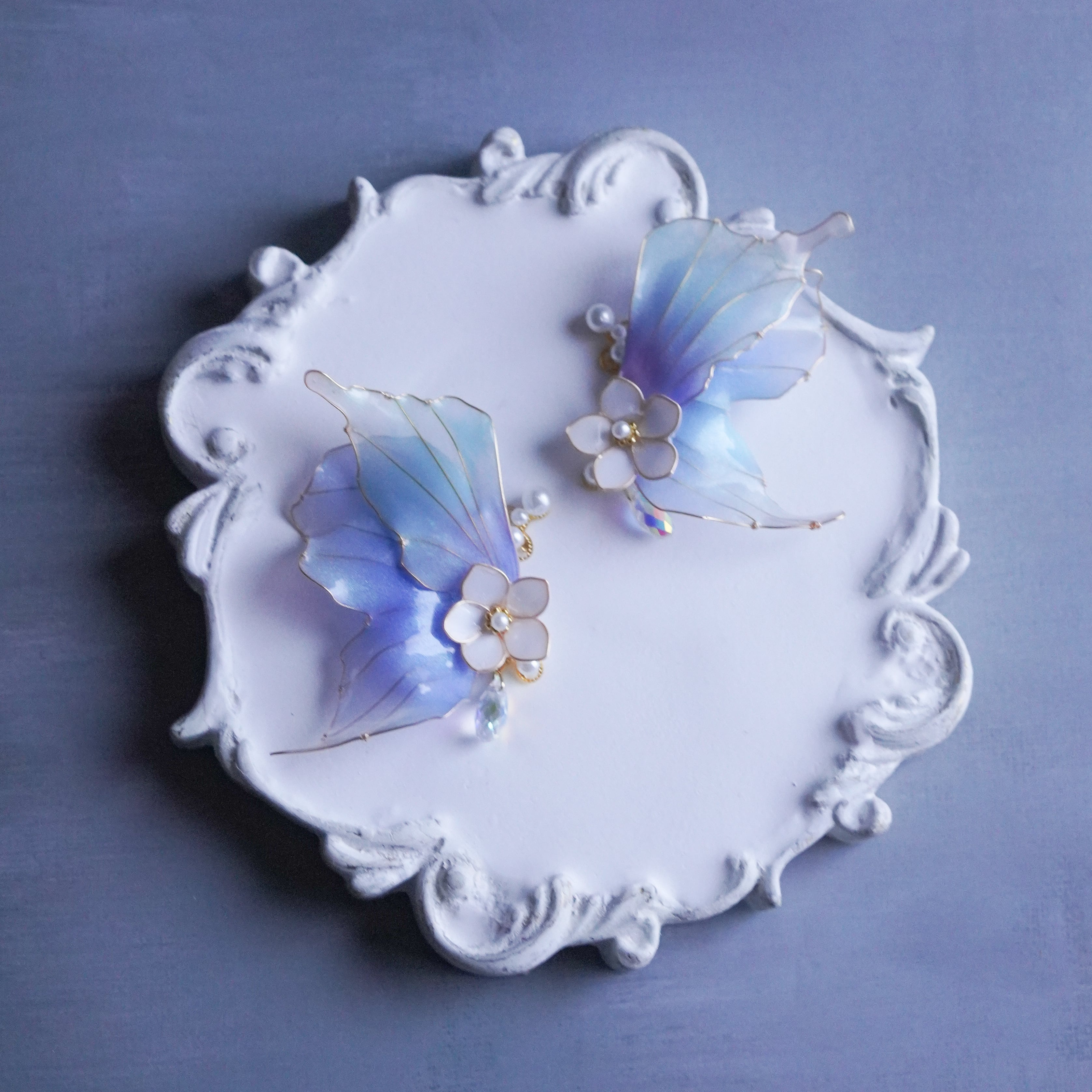 デップアートという手法でひとつひとつ丁寧に仕上げた【人魚のひれの耳飾り】です。