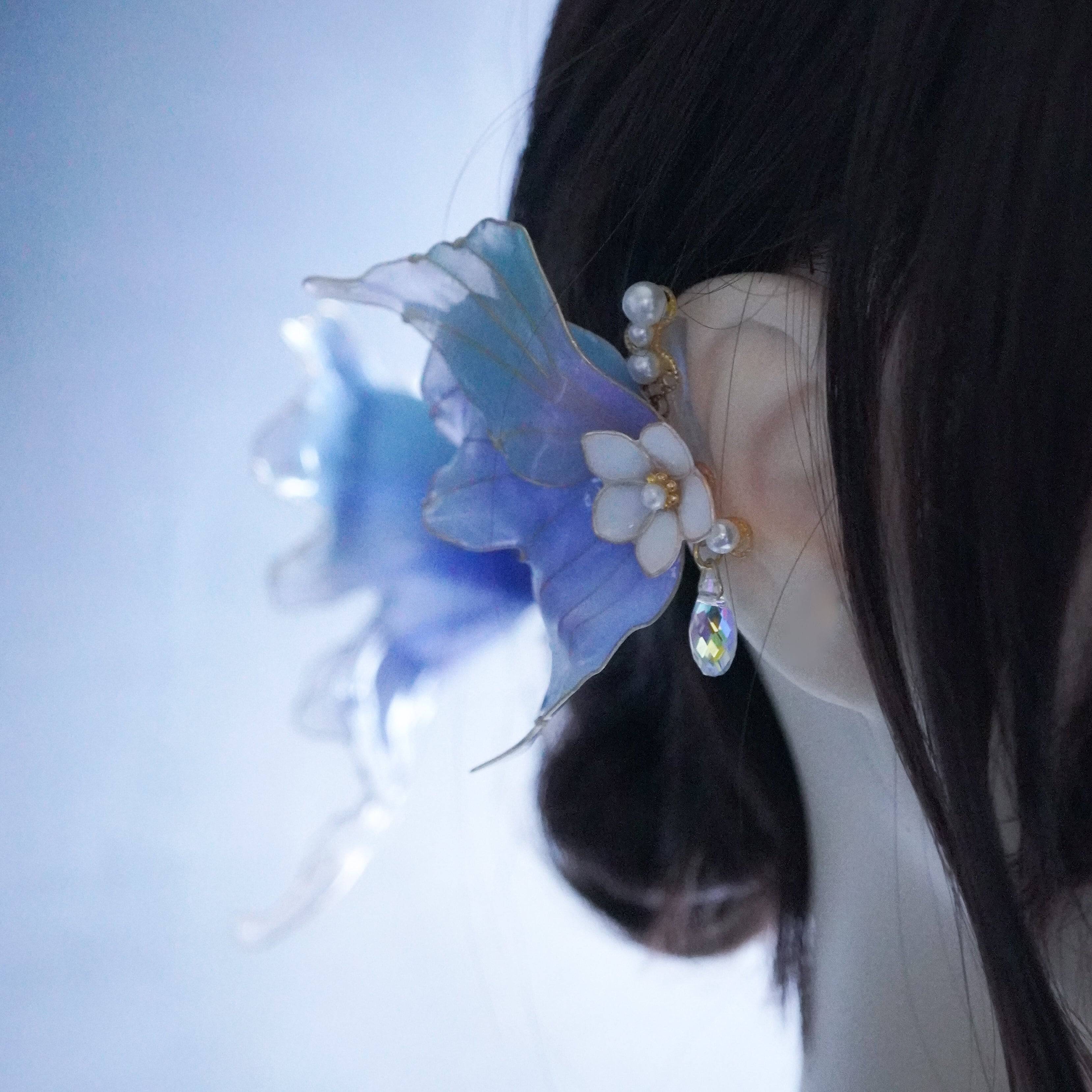 透け感のある涼し気な耳飾りになります。